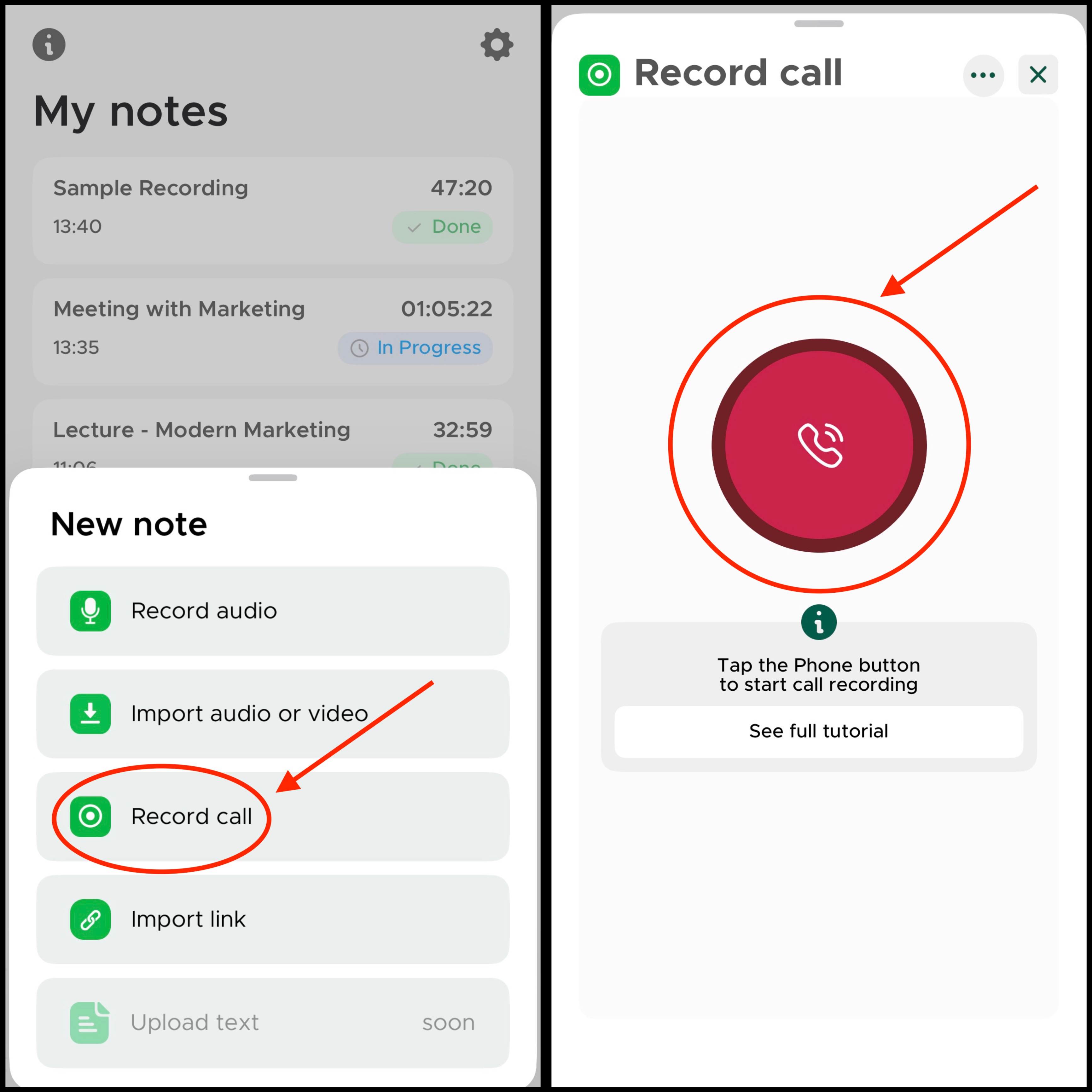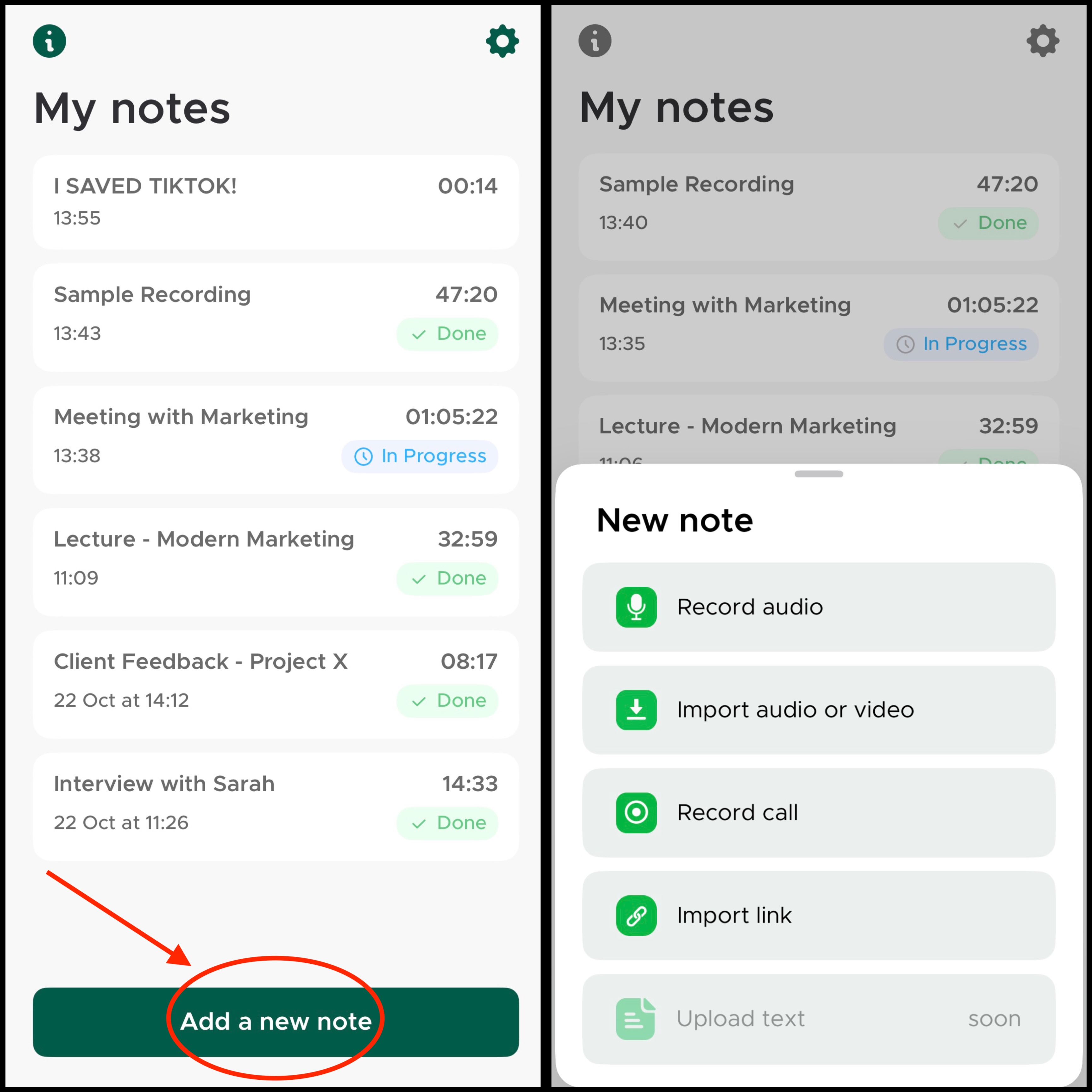 - Tap on the note you want to transcribe.