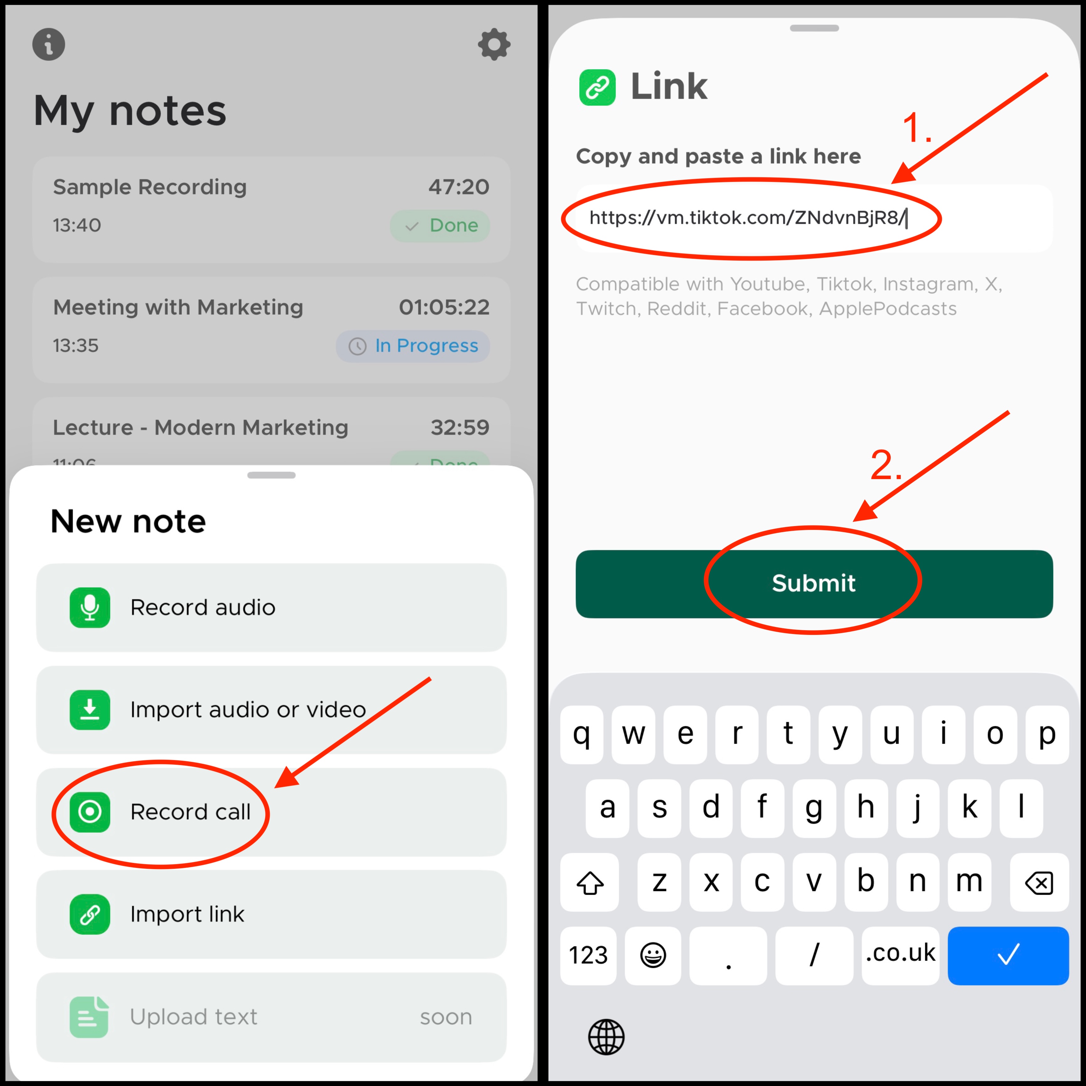 Transcriber also lets you import audio or video directly from your favorite platforms. Simply copy the link and paste it into Transcriber.